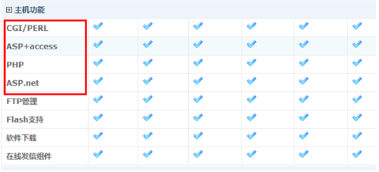 网站的开发语言有很多,常见的有asp、asp.net、php等,不同语言所需要的系统和运行环境并不一样,所以在购买主机前需要知道自己网站使用的是什么语言,需要什么样的运行环境,以便选择合适的配置,各型号虚拟主机支持的程序可以在主机配置页面中看到。